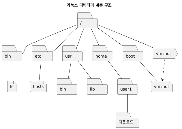 리눅스는 파일을 효율적으로 관리하기 위해 계층 구조(트리)를 사용. 모든 디렉터리는 맨처음 루트(/)에서 시작함.